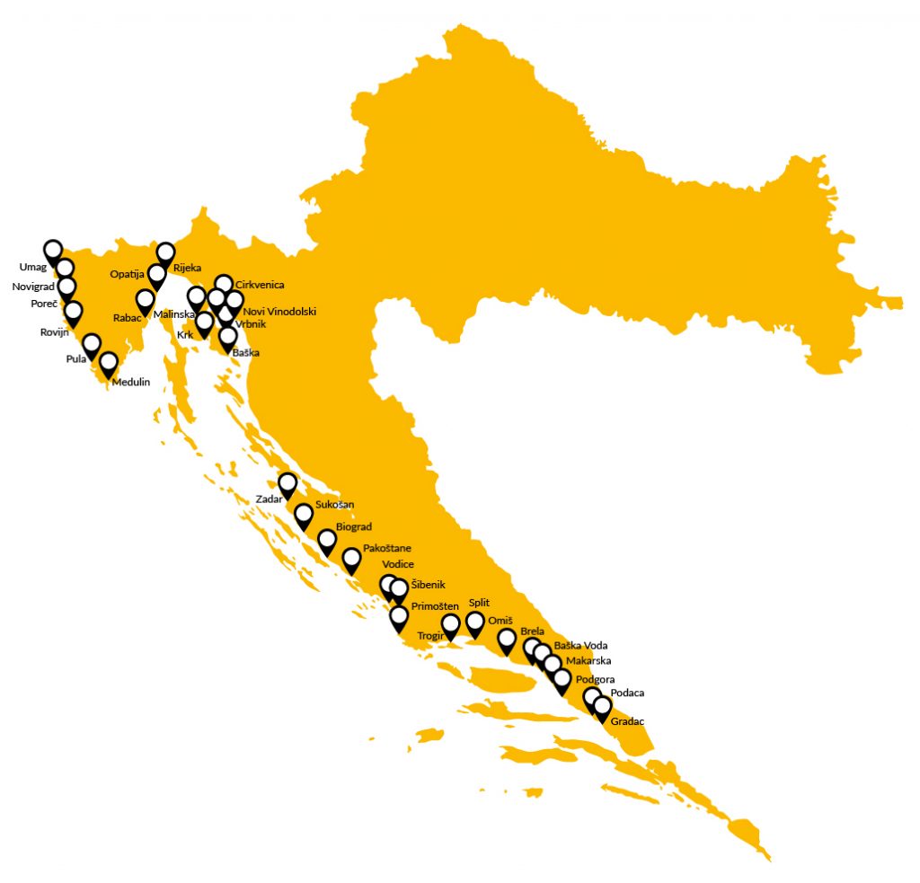 Hier hat sich Regiojet noch ein weiteres Angebot einfallen lassen: An die Ankunftszeit des Zugs angepasst, verlassen 6 Regiojet-Busse Rijeka täglich um 30 Küstenstädte zu erreichen.